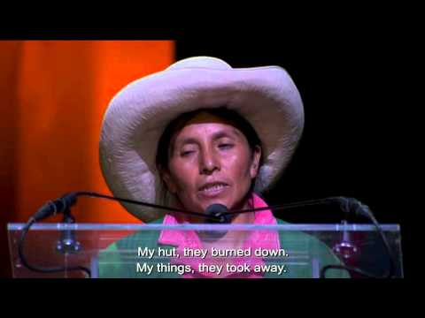 One day in 2011, the mining company came to the Acuñas’ door, demanding that she leave her land. When Acuña refused, she was met with brutality. Armed forces came and destroyed her house and possessions, and beat her and one of her daughters unconscious.